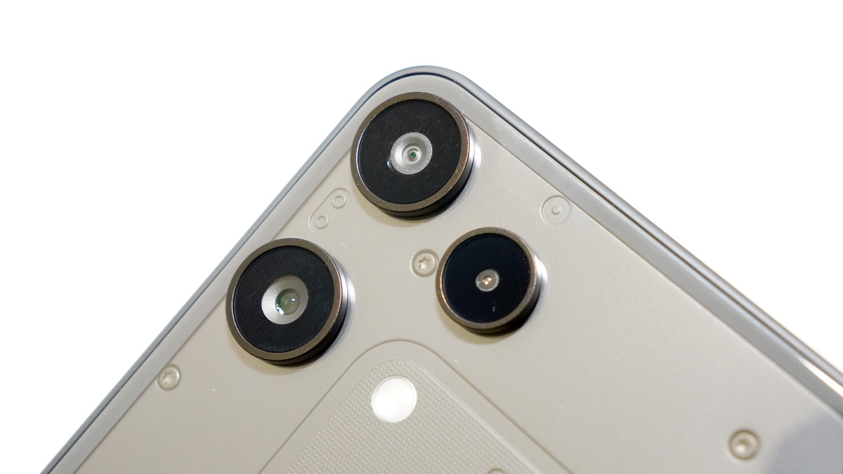 背面に搭載されたカメラの配置も、「Nothing Phone(3)」を踏襲している。この価格帯ながら、トリプルカメラを搭載。メインカメラは5000万画素で、切り出しを行うので2倍ズームにも対応する。料理など、手元に置いたものの写真を撮る際に影が写らないよう少し離れた位置から撮影しても、劣化が少ない。超広角カメラは800万画素で性能は落ちるものの、ダイナミックに風景を切り取りたいときに便利だ。