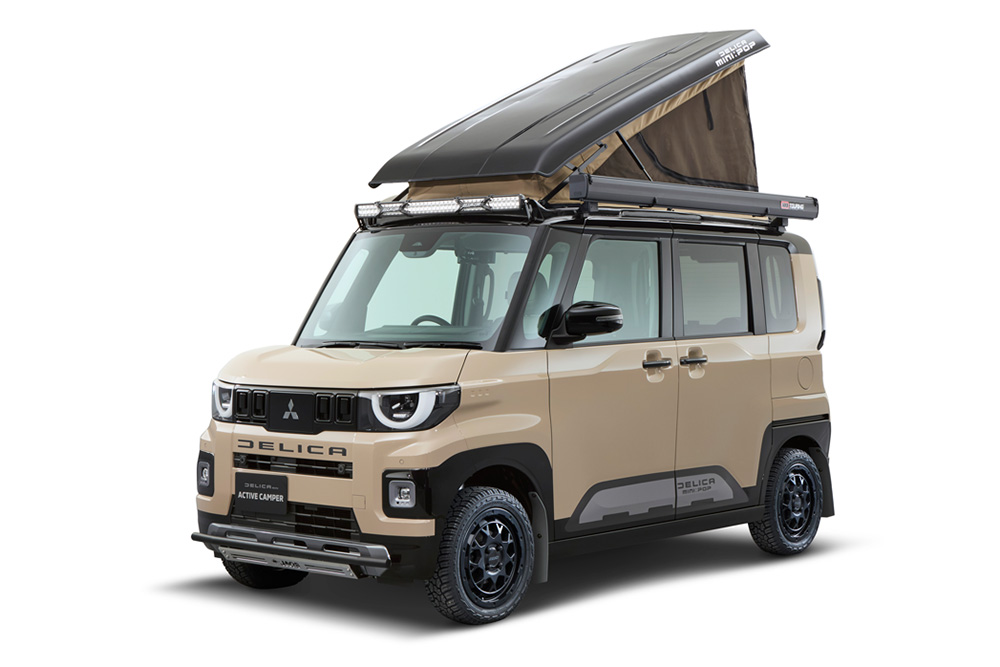 「デリカミニ」にポップアップルーフを採用、さらにフロントスキッドバーやマッドフラップを装着し、仲間と一緒にアウトドアへ出かけたくなるカスタムとなっている。また約25mmのリフトアップキットを採用することで悪路走破性も向上させ、アウトドアを本気で楽しめる仕様となっている。