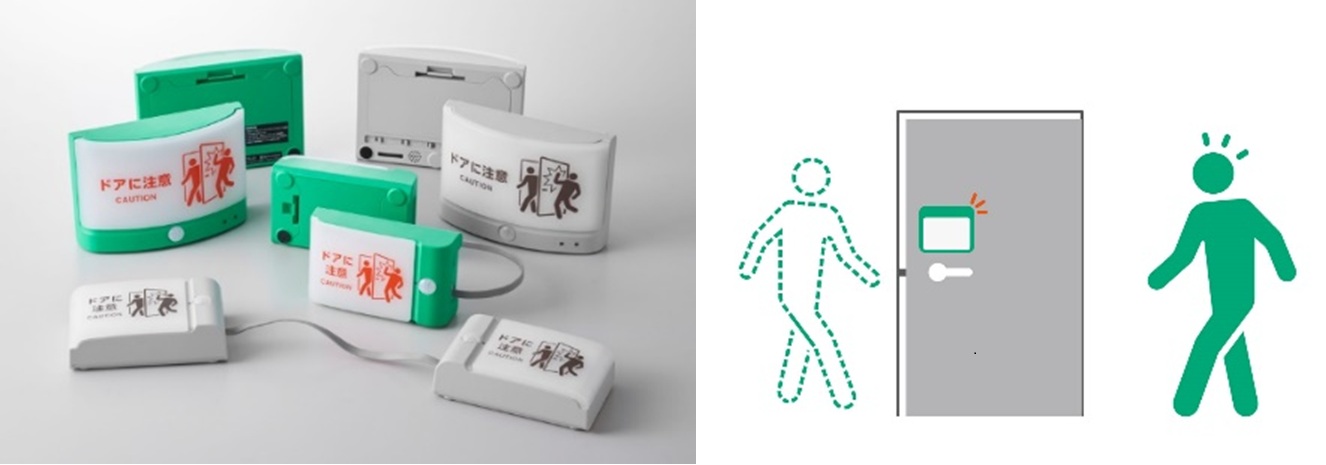 「扉につけるお知らせライト」は、工場や倉庫、オフィスなどで扉が急に開くことによる衝突の危険性(ヒヤリハット)に着目し開発した、人感センサー付きライトシリーズ。2017年6月の発売以来、多くのユーザーから好評を博している。