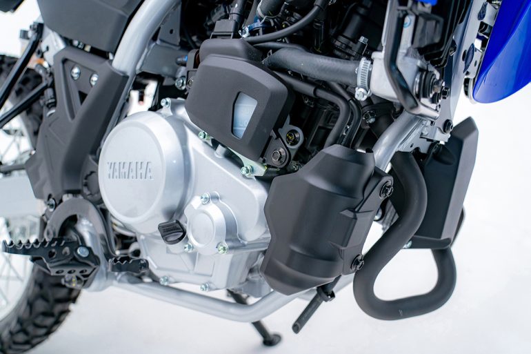 低速向けと中高速向けのカム(吸気側)が7,000~7,400r/minで切り替わるVVA(Variable valve actuation=可変バルブ)の搭載により、全域で優れた出力・トルク特性を発揮。オフロードでのファンライディングのみならず、オンロードにおいても交通の流れにスムーズに順応できるような加速から高速域での性能を実現している。