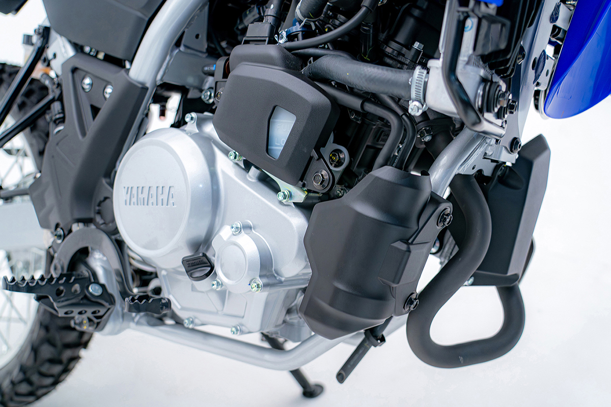 オフロード走行から日常使いのオンロード走行まで、幅広いフィールドでさまざまな乗り方に呼応する水冷・SOHC・4 バルブ・FI・124ccエンジンを搭載。52.0mm×58.7mmのボアストローク、11.2:1の圧縮比から11kW(15PS)/10,000r/minの最大出力と11Nm/6,500r/minの最大トルクを発揮。