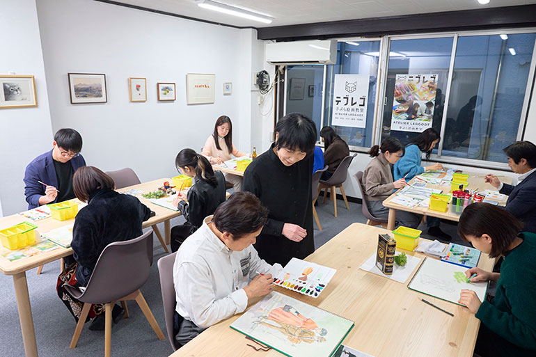 そんななか、今注目を浴びているのが絵画教室「テブレゴ」。仕事帰りや出張先で、ジムに通うように絵を学べるというコンセプトで多くの社会人が通う。