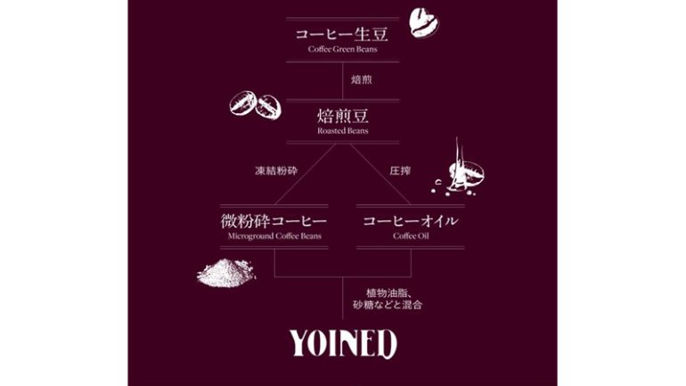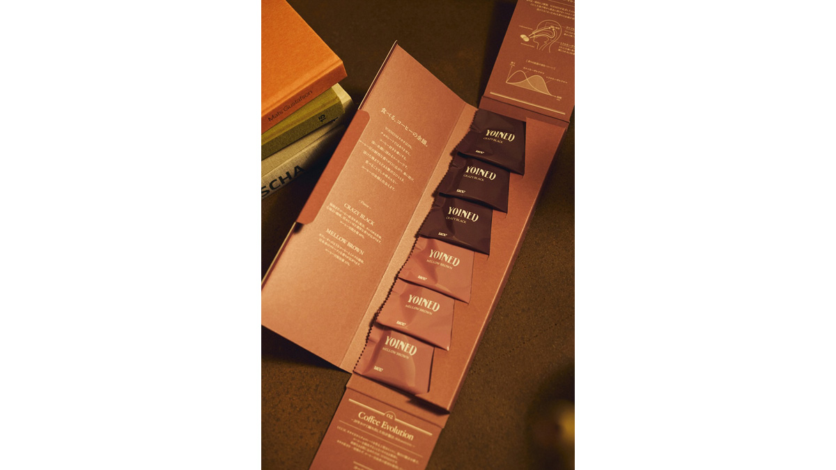 コーヒーの豊かな香りは口の中に広がると同時に、鼻に抜けていく。商品名の『YOINED』は、コーヒーの味と香りが長く強く続き、余韻を楽しめるところからきている。