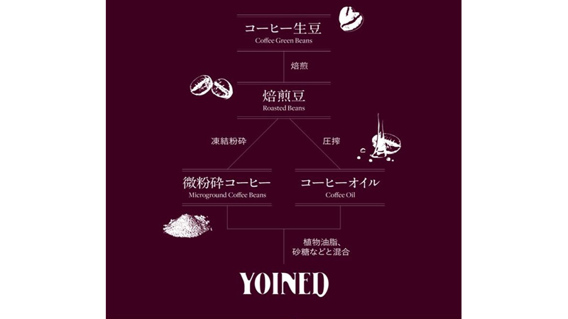 『YOINED』は口当たりはチョコレートを思わせるが、香りと味はコーヒーそのもの。それもそのはず、カカオ豆はいっさい使われておらず、コーヒー豆が使われている。