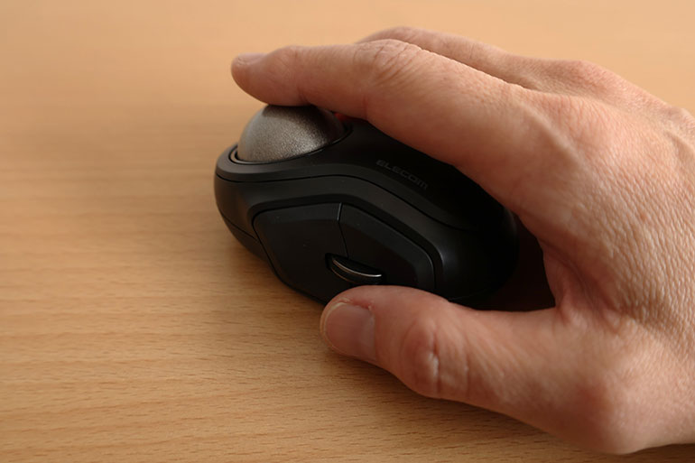 姿形は、前作をほぼ踏襲しているが、同社のM-XPT1トラックボールシリーズと比較して約30%もの小型化を果たしているのは時代の流れを感じる。手にほどよくフィットするし、通常のマウスに慣れている人でも移行しやすい。