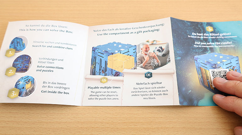 説明書は箱に同封されているが、ドイツ語/英語で書かれている内容は、「Deep within the sea an ancient lost city…」で始まる、パズルを盛り立てるストーリーがメイン。
