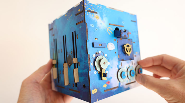 現在までに8製品が販売されているドイツ生まれのこのパズル、両手のひらで扱うサイズ感の立方体で、細かい意匠やペインティングが全面に施されている。