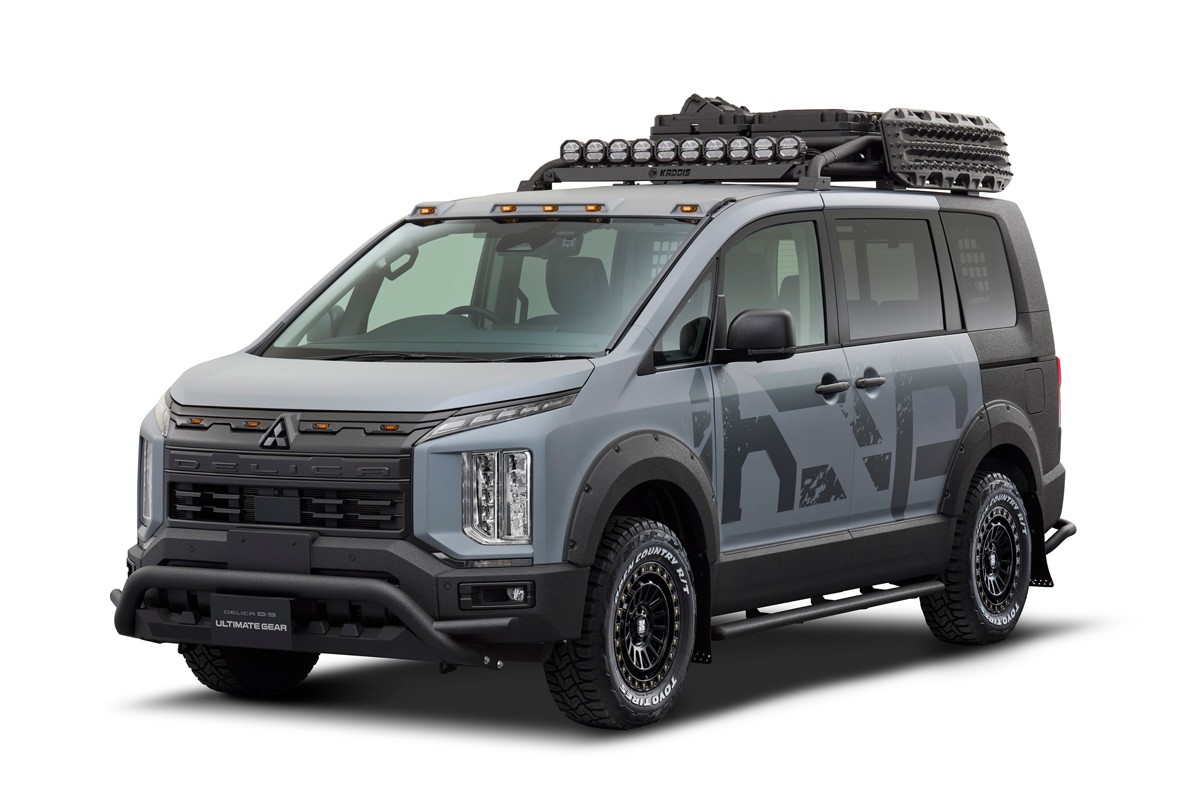 早くもデリカミニのカスタムが登場。このアルティメットギアはホワイトとブラックのオリジナル2トーンカラーのデリカミニに、力強さやタフさを演出する、ザラザラとしたキズが目立ちにくいラプター塗装を施すとともに、フロントグリルガード、ルーフラック、リヤラダーを採用。20mmリフトアップしたサスペンションによって、悪路を駆け抜けていく、冒険心を表現したデリカD:5同様、細部までカスタムした1台だ。こちらは新型デリカミニのオーナーがカスタムする際の参考にもなりそうだ。