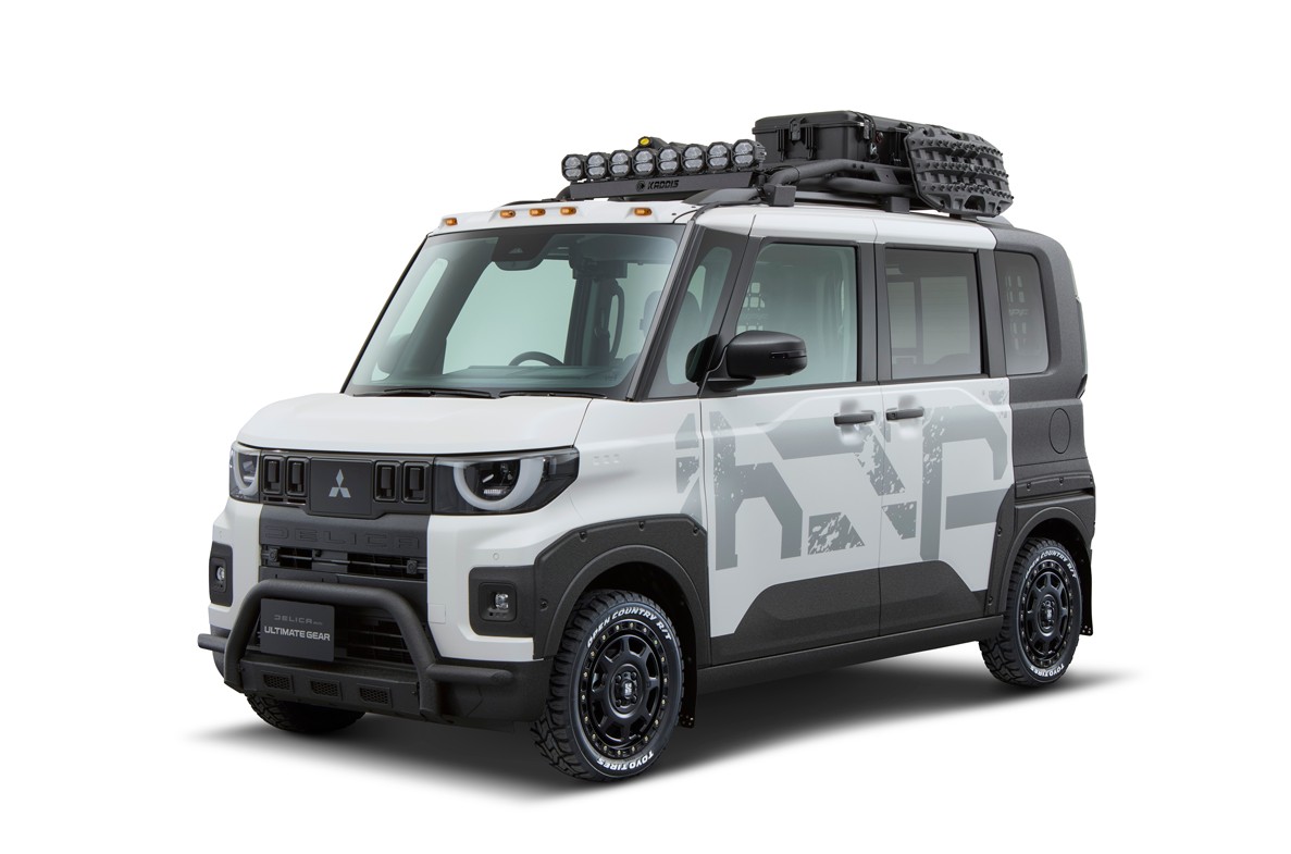 新型デリカミニの三菱自動車純正アクセサリー装着モデルも登場。カモフラージュ柄のデカールやデリカミニ専用ルーフラック、マッドフラップを装着して一段とタフでワイルドなイメージを演出。兄貴分のデリカD:5 Wild Adventure styleともリンクしたカスタマイズでもあり、一部外装用品に東京オートサロン出展用特別色を施したスペシャルバージョンとなっている。