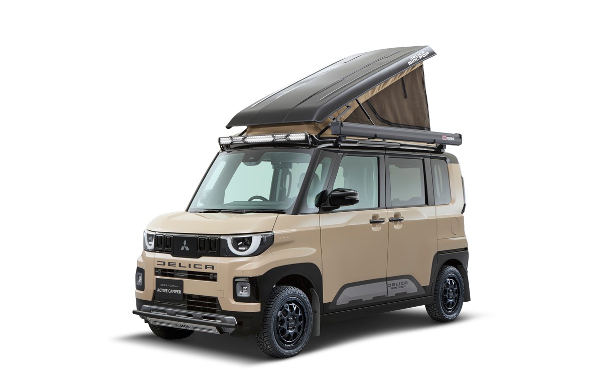 デリカミニは初代から、車中泊にも対応する軽スーパーハイト系ワゴンとして人気を博してきたが、この展示車にはポップアップルーフを採用し、アクテイブなキャンパーモデルを提案。フロントスキッドバーやマッドフラップを装着したカスタムも施されている。また約25mmのリフトアップキットを採用することで悪路走破性も向上させ、アウトドアを本気で楽しめる仕様としている。