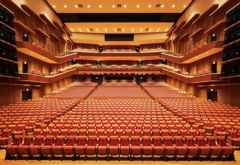 プロセニアム形式とは、舞台を額縁のように切り取ることから「額縁舞台」と呼ばれることもあり、音楽ライブや演劇など様々な催事に対応できる。一方、音響反射板形式とはピアノやオーケストラなどの生演奏を客席に効果的に届けるための設備のことだ。