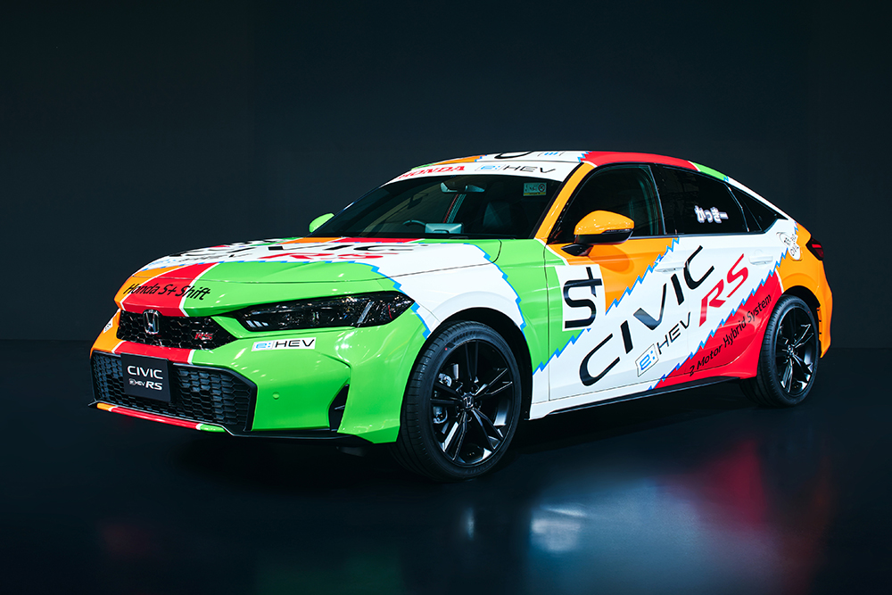 シビック e:HEVのスポーティーグレードとして新たに加わる予定の「RS」を、市販予定モデルとして出展しています。プレリュードに続き、ハイブリッドの新制御技術「Honda S+ Shift(エスプラスシフト)」を搭載していく。今回の出展車両では、約30年前に当時のシビックが全日本ツーリングカー選手権に参戦しチャンピオンを獲得した時のデザインをオマージュし、脈々と受け継がれる走りへの情熱を表現。操る喜びを継承するモデルとして、2026年中の発売が予定されている。
