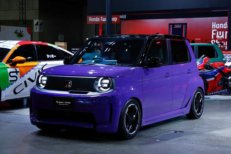 昨年のジャパンモビリティショーで世界初公開したSuper-ONE プロトタイプは、日常の移動を刺激的で気持ちの高ぶる体験へと進化させることを目指した小型EVで、今回、新たに市販予定カラーを採用した車両を出展。専用に開発したBOOSTモードにより、出力を拡大させるだけでなく、仮想有段シフト制御とアクティブサウンドコントロールシステムの連動により、まるで有段変速機を備えたエンジン車のように、迫力あるサウンドと鋭いシフトフィールを演出。