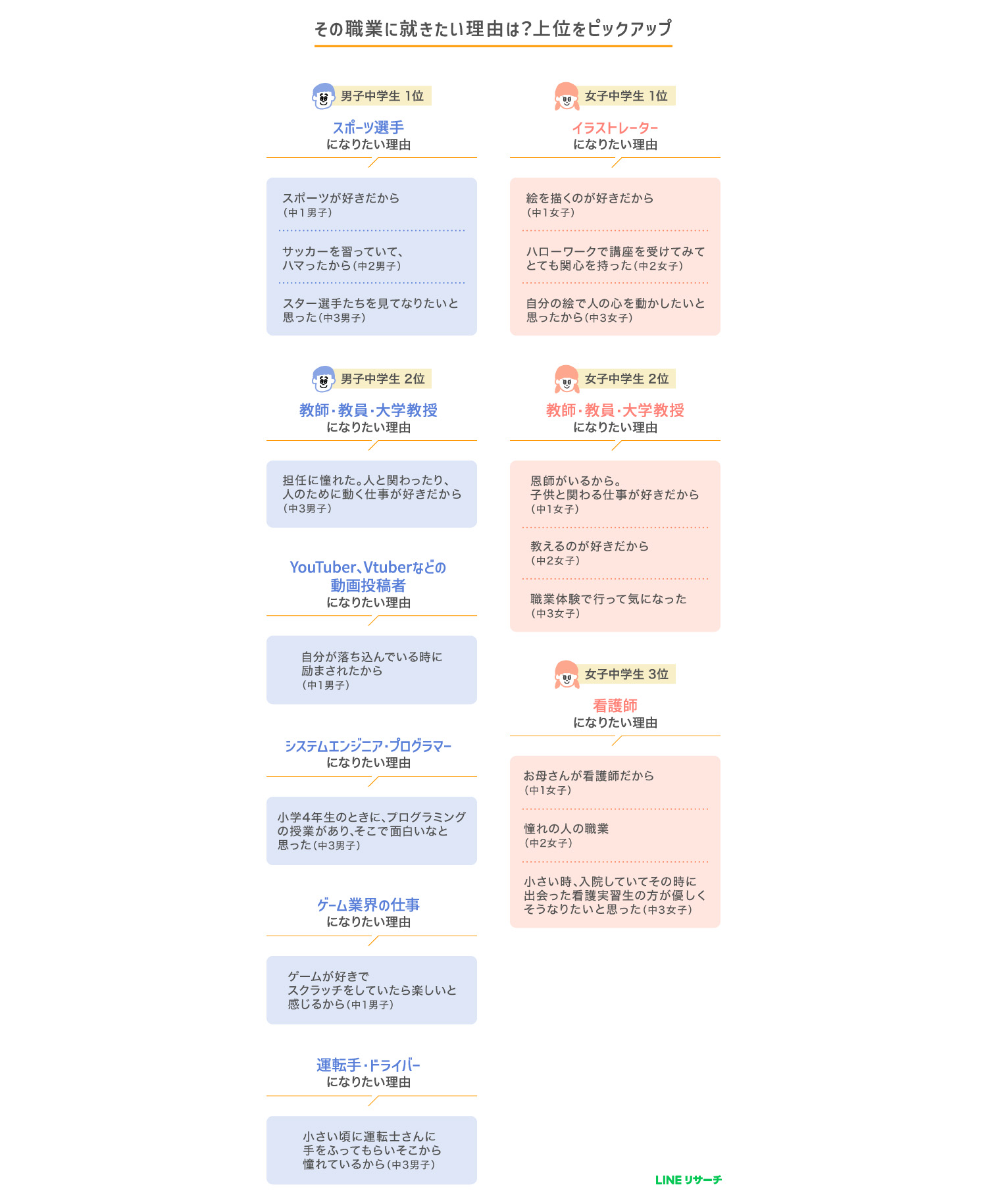 中高生に、将来いちばんなりたい職業を聞いた。