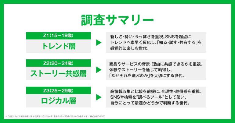 OASIZはこのほど、「Z世代の消費意識・SNS利用実態」に関する調査を実施し、その結果を発表した。