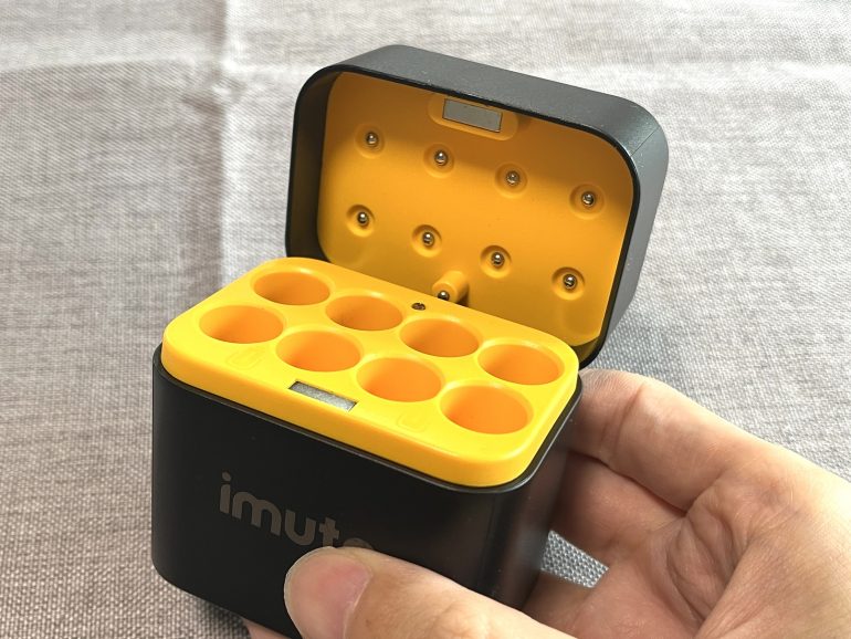 『imuto 3600mWhリチウムイオン単三形充電池』は、imutoブランドが展開する単三形リチウムイオン充電池と専用充電ケースのセット製品である。