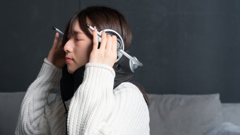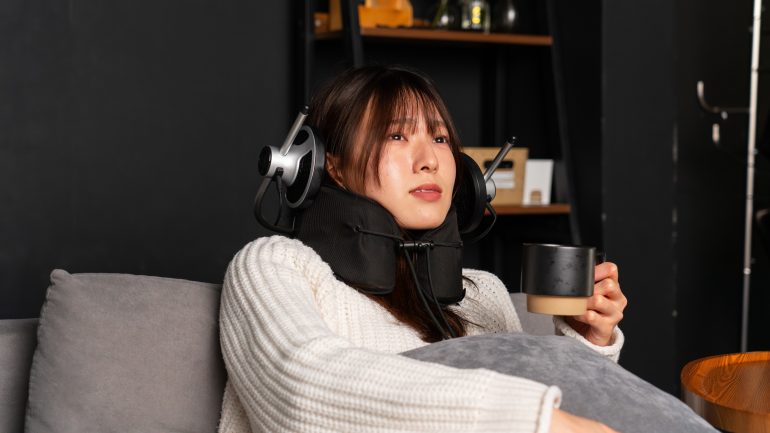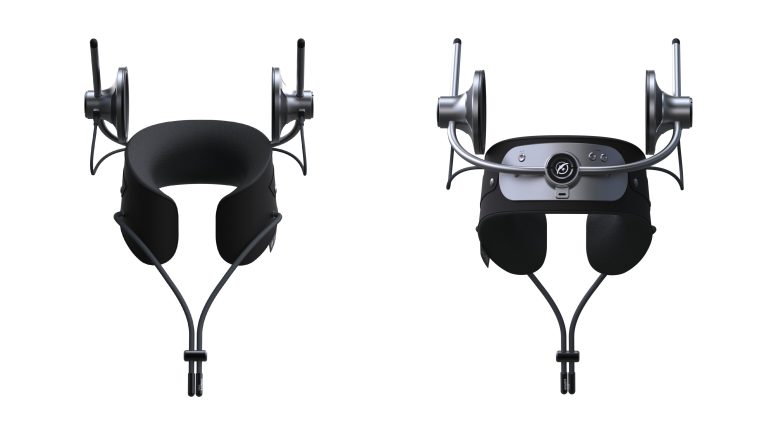 「SWIRE AURBIS」は、耳をふさがずに大迫力のサウンドで自分だけの音響空間を楽しめる、新ジャンルのパーソナル・シアター・スピーカー。長時間の使用による耳の閉塞感や疲労感といった、従来のヘッドホンやイヤホンの課題を解消すべく開発された製品で、耳をふさがないオープンタイプのスピーカー構造のため、圧迫感なく着用することが可能。さらに、人間工学に基づいたネックピローを採用したことで、長時間視聴しても疲れない構造を実現している。
