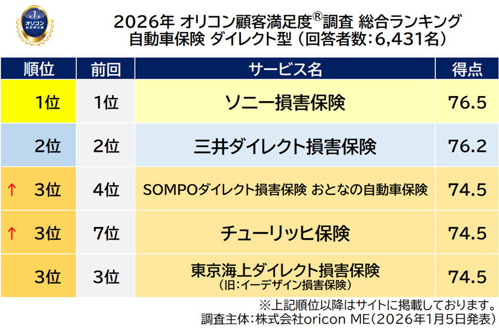 オリコンはこのほど、グループ会社であるoricon MEが、実際のサービス利用者を対象に第三者の立場で実施した「損害保険会社」についての顧客満足度調査の結果を発表した。