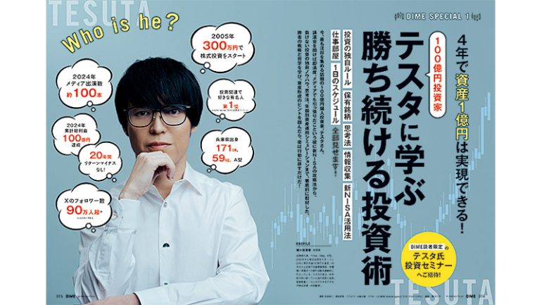 2005年、300万円を元手にデイトレを中心に株式投資を開始、6年目で億トレーダーに。2015年からは中長期投資も始める。収支は19年連続プラスで、生涯獲得利益は100億円を超える。監修本『マンガでわかるテスタの株式』(大和書房)が発売中。