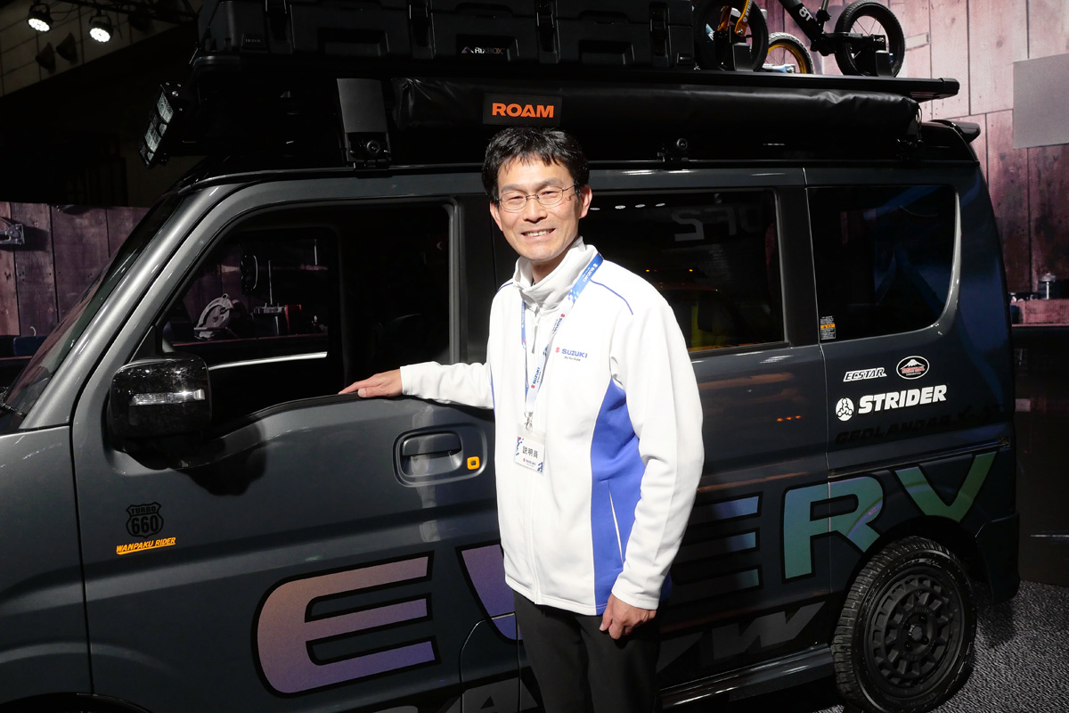 現在は「仕事として必要な人+α」で客層が広がっている感じですね。こういったイベントを通して「SUPER CARRY WORK & PLAY PRO」の評判を確認し、どのような仕様・用品が求められているのか検討を進めていきたいと思います。我々はベースになる車両をしっかり作って提供することが使命。そこにカスタマイズして楽しむ人、アフターで用品を作るメーカーさんなどの提案が加われば様々なシーンで盛り上がるし、結果として、サードパーティさんや我々の商売にうまくつながってくるといいのではと思っています。