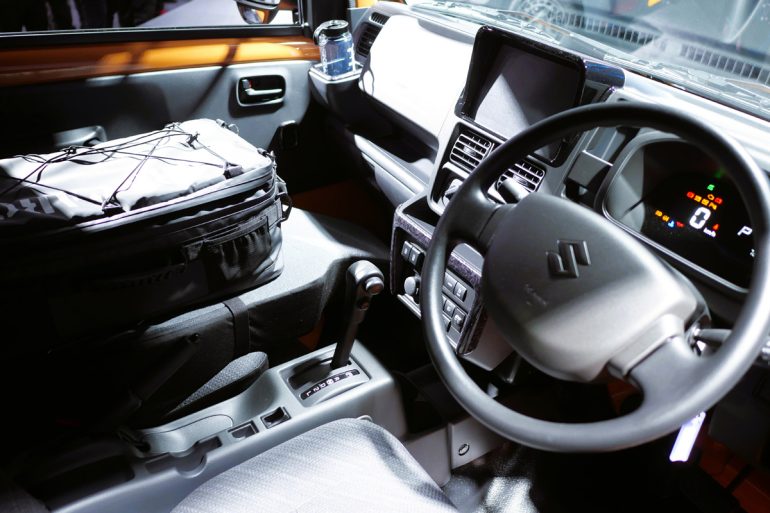 内装に関しては、ブラック・コーディネートです。いま販売しているエブリイはベージュ内装ですので、かなりギア感が増していると思います。