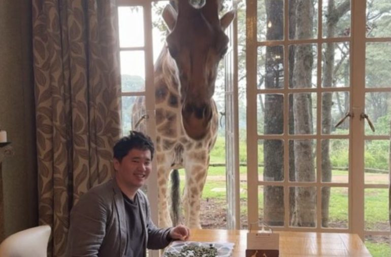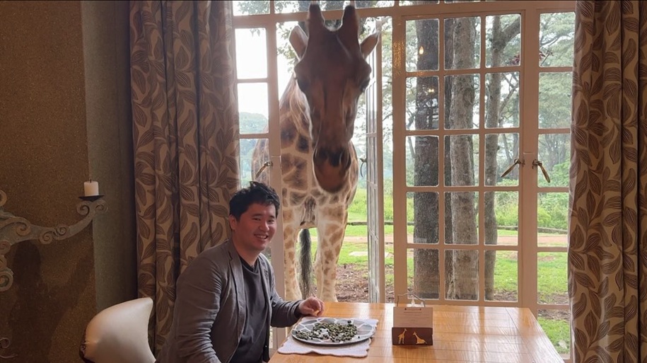 おのださんは新刊書でもたくさんの楽しい旅を紹介している、動物好きのハートをわしづかみにしてくれたホテルがある。ケニアの首都ナイロビにあるキリンと一緒に朝食やアフタヌーンティーを楽しむことができるホテル「ジラフマナー」だ。