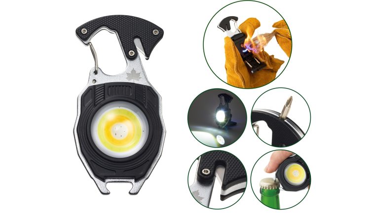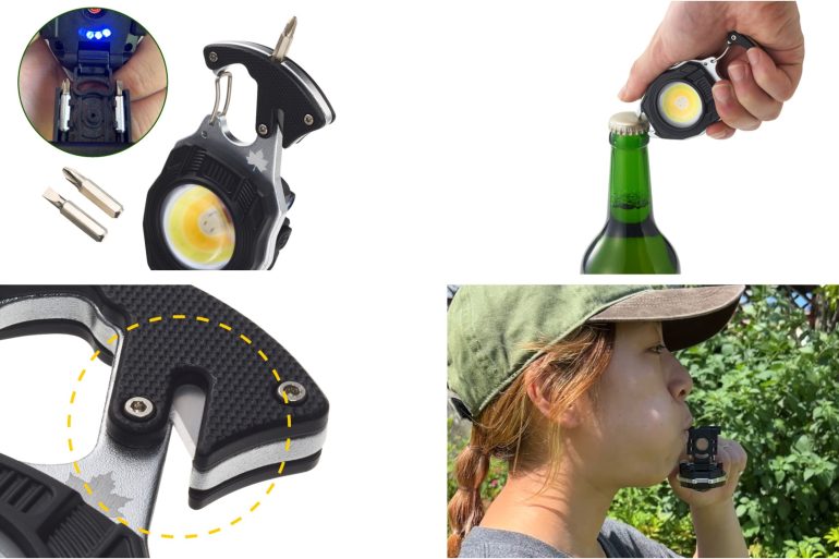 さらに、マイナス・プラスの2種類のドライバー、栓抜きやカッター、遭難時や災害時に役立つホイッスルも搭載しており、一本持っておくだけでキャンプ用品としてはもちろん、防災グッズとしても幅広く活躍する。