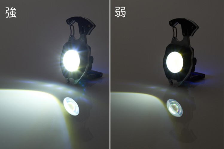 総重量は約70gと軽量で、ポケットや非常用バッグにもすっきり収まるほか、カラビナ付きでベルトやリュックにも簡単に取り付けられるため、アウトドアや非常時にすぐ使える位置に装着可能だ。