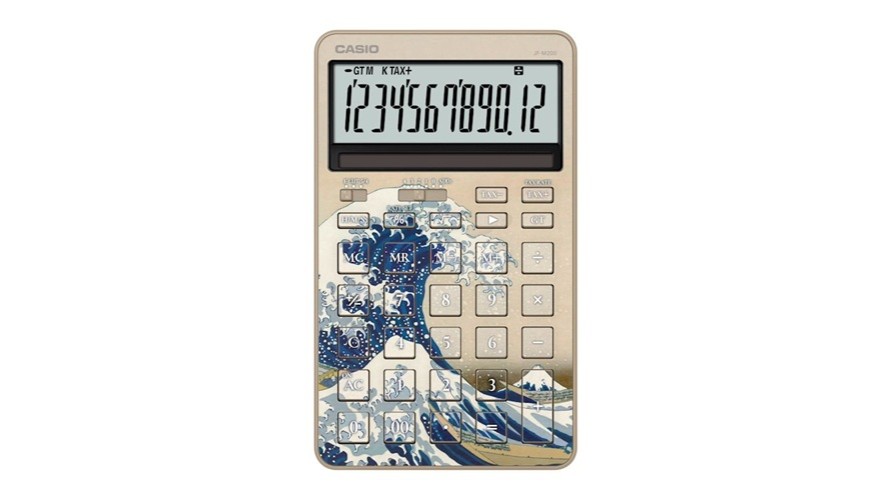 カシオ計算機は、スタイリッシュ電卓の新製品として、江戸時代の浮世絵師・葛飾北斎の代表作「神奈川沖浪裏(かながわおきなみうら)」と「凱風快晴(がいふうかいせい)」をデザインモチーフにした「JF-M200-TJ-KHK/JF-M200-TJ-KHG」を、2026年1月22日に数量限定で発売する。