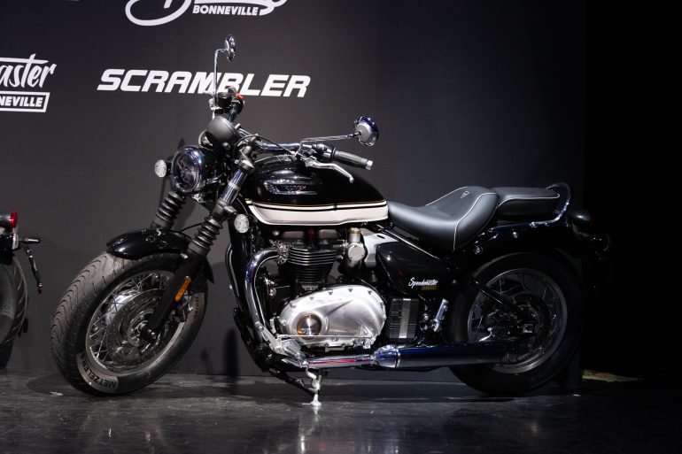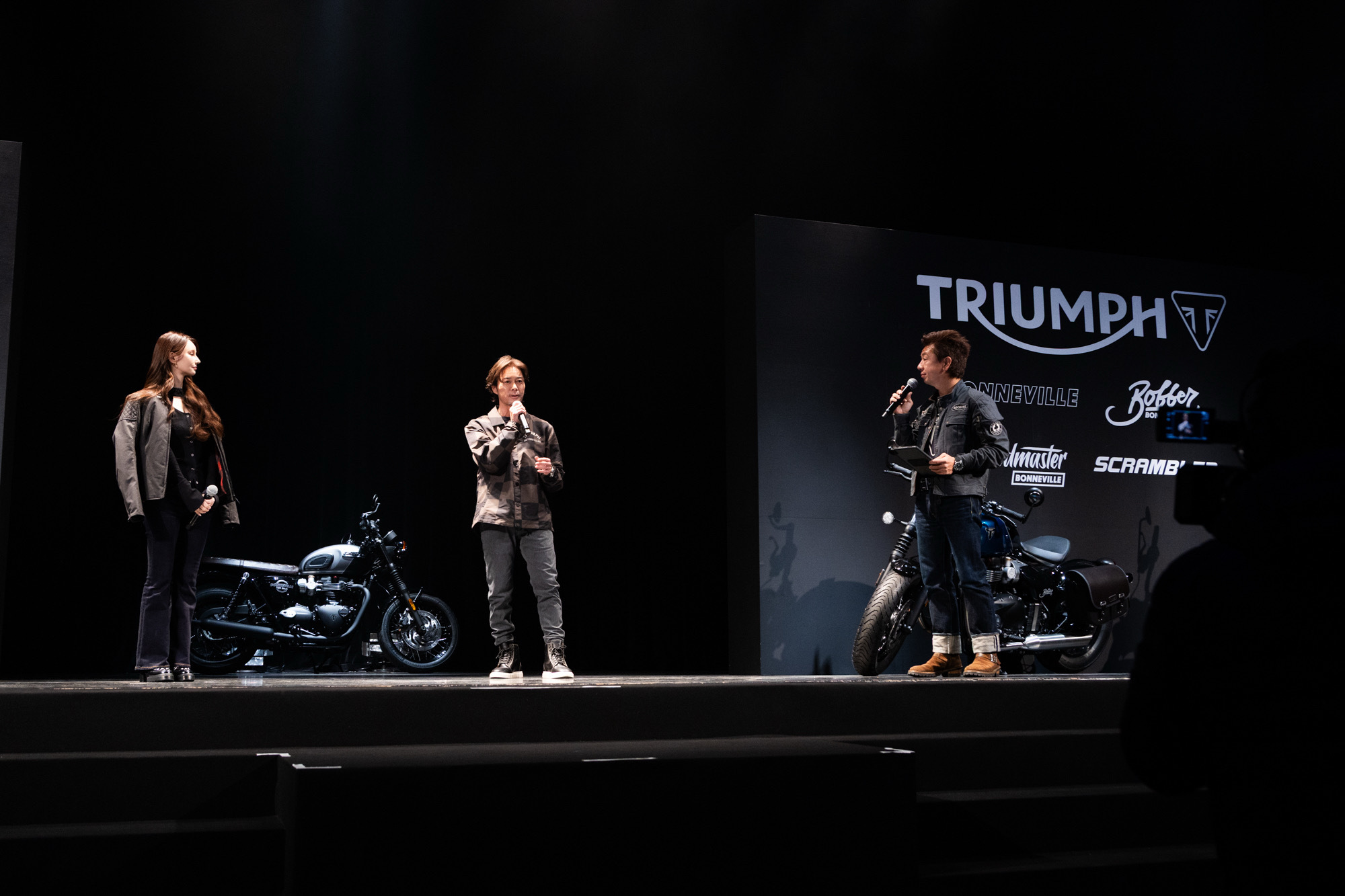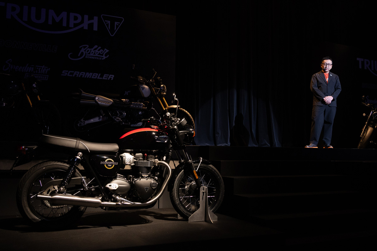 発表会冒頭には、代表取締役社長・大貫陽介氏が登壇。トライアンフの歴史と進化について解説した。その後、シニアマーケティングマネージャーの小林正和氏が「モダンクラシックシリーズ」ついて説明を行なった。