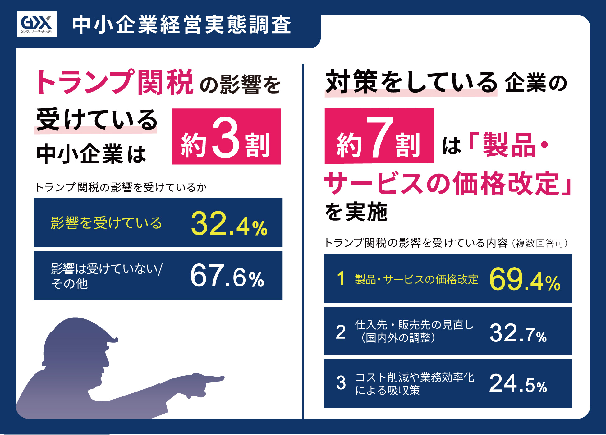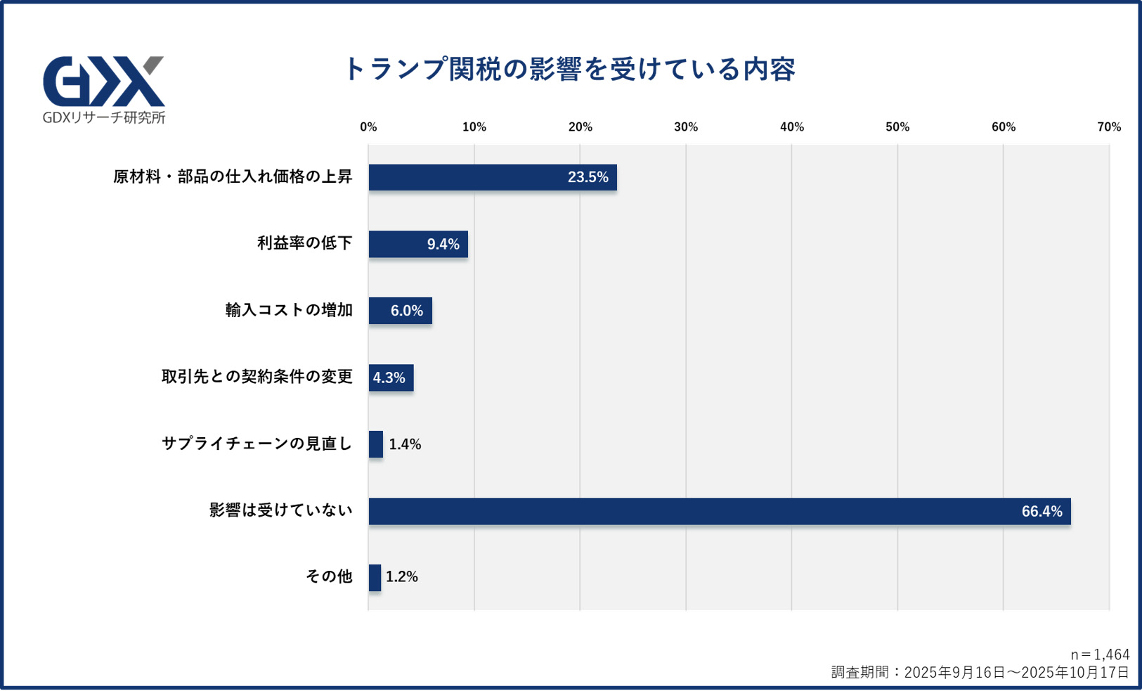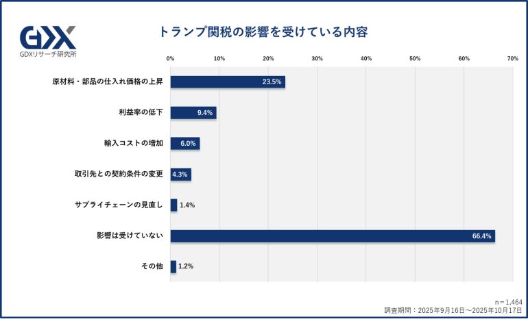 トランプ関税によって「原材料・部品の仕入れ価格の上昇」の影響を受けている企業は23.5%
