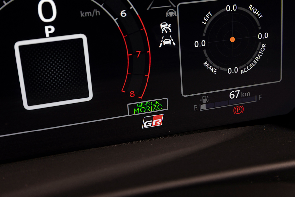 モリゾウとともに専用の四駆制御モードが開発された。ベース車に備わる「GRAVEL」モードと置き換えるかたちで「MORIZO」モードを備えている。この「MORIZO」モードは、ニュルを安心して走り切るための最適なイニシャルトルクと駆動力配分となる前50:後50の設定となっている。