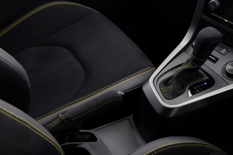 ・スエード表皮&イエローステッチ(GR専用ステアリング・シフトノブ&ブーツ・パーキングブレーキレバー&カバー)