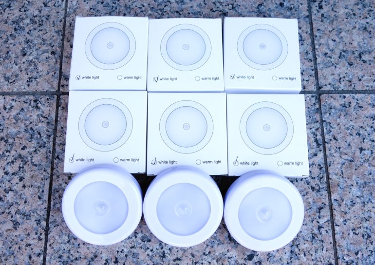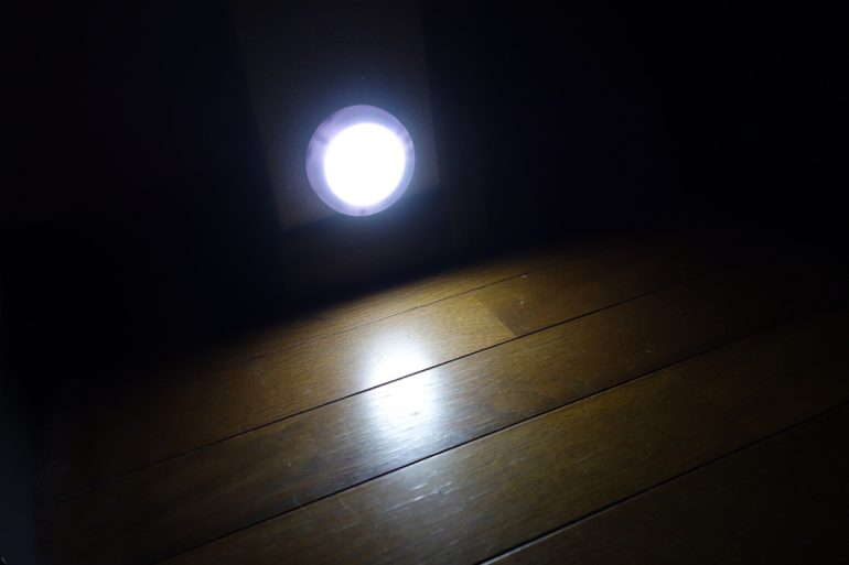 筆者が購入した電池式の人感センサーフットライトパッと白く明るい「昼白色」タイプだが、ウォーミーな光となる「電球色」も選べる。なお、防水ではないので屋内専用。屋外では使用不可であることをお断りしておきたい。