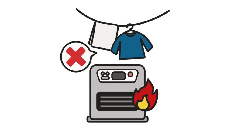 床置き型の暖房器具のそばにおもちゃや本など燃えやすいものがあるのを見つけたら、子どもにすぐに注意して片づける習慣をつけることが大切。また、洗濯物の乾燥や調理などにストーブを用いて火災になる事故も起きているので、保護者も注意する必要がある。