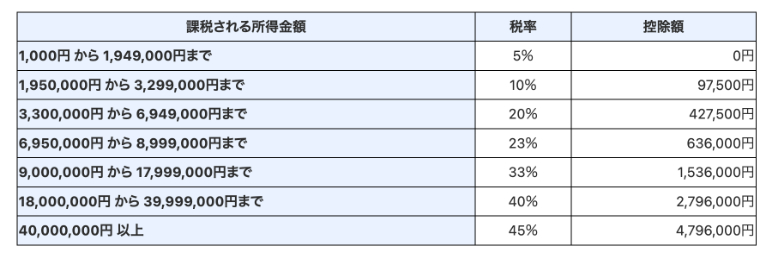 所得税の速算表は、以下のとおりです。