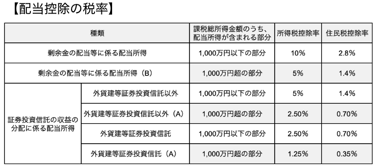※住民税控除率は、市民税および県民税の配当控除率の合計です。
