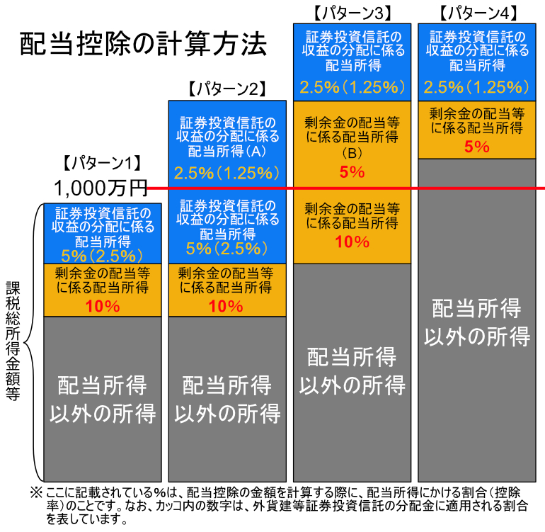 この図から、適用される配当控除率は、課税総所得金額と配当の種類の2つによって決まることがわかります。