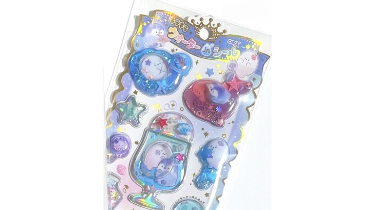 中に液体やパーツが入っていて揺れる構造が楽しいシールです。大きく、存在感のあるものが多いのでシール帳に貼ってあると目立ちます。
