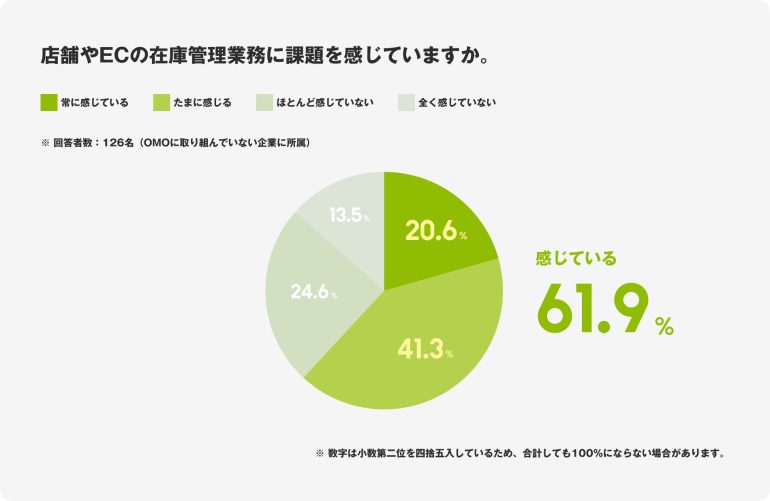 OMOに取り組んでいないアパレル企業に所属する人に対する質問「店舗やECの在庫管理業務に課題を感じていますか」に、「課題を感じている」と回答した人は61.9%と約6割に上った。