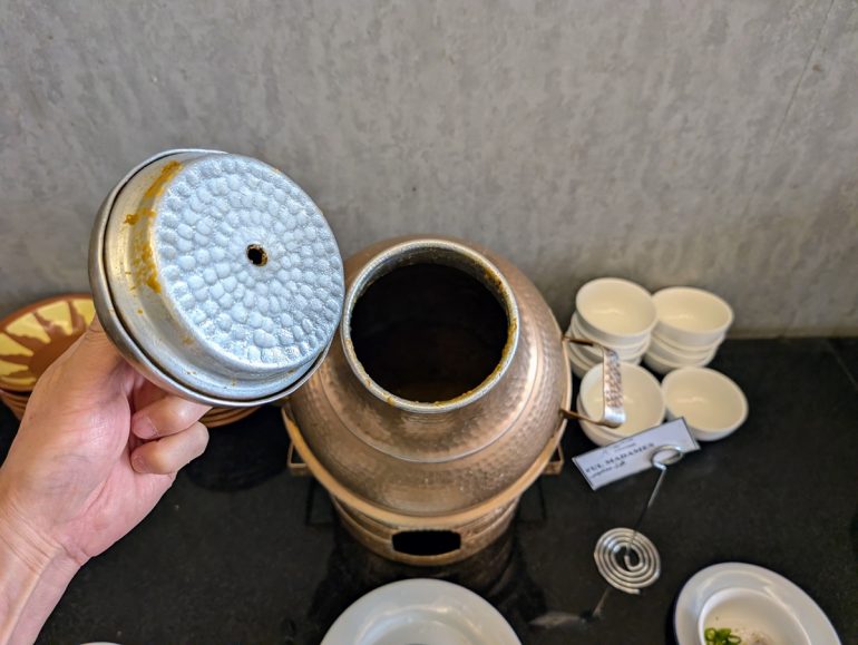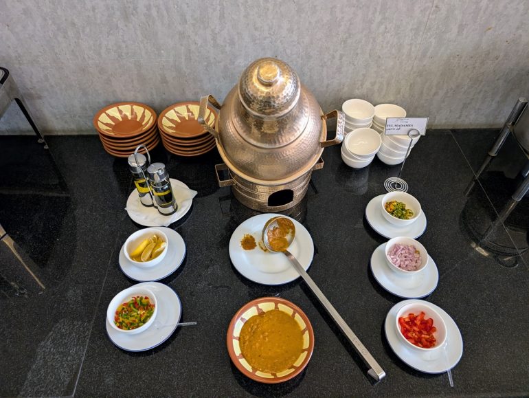 筆者が滞在したホテルの朝食バイキングではこんなふうに薬味もいっしょにセッティングされていた。
