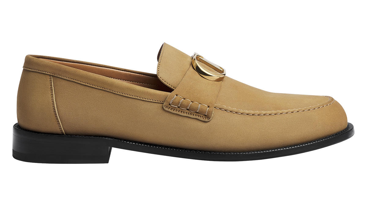 クラシックなモカシンを想起させる一つ目のモデルは、ブラックやブラウンのスムースレザー、そしてベージュのヌバックが用いられ、洗練のタッチとしてメタルの”CD”バックルを完備。