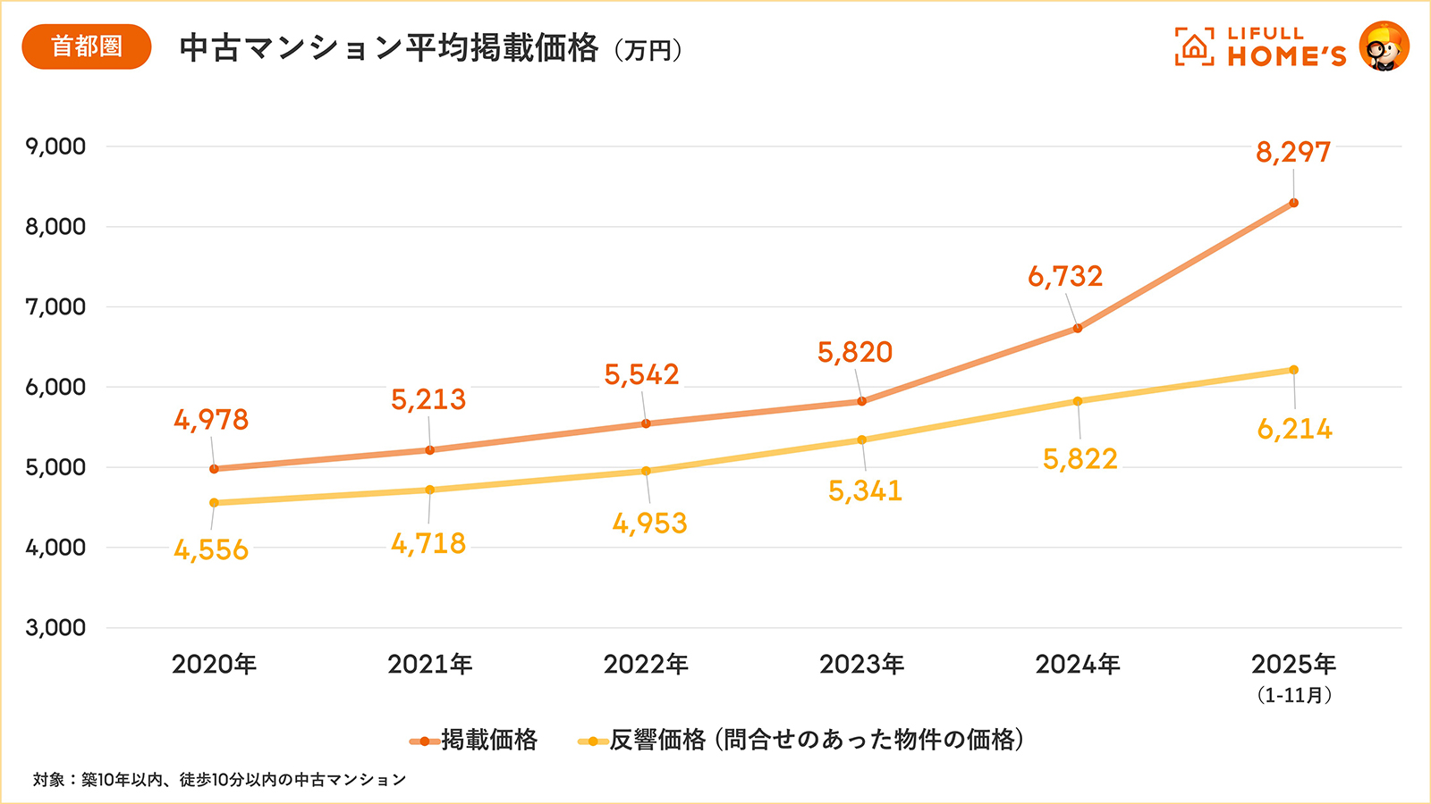 集計対象:『LIFULL HOME’S』に掲載された築10年以内・徒歩10分以内の中古マンション