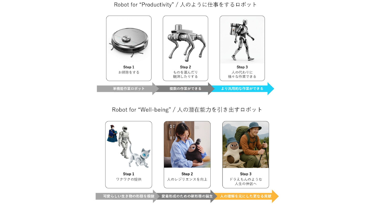 「フィジカルAI/AIロボットには『生産性向上型』対『ウェルビーイング型』の2つの潮流があります。人のように仕事をするロボットから、人の潜在能力を引き出すロボットへ、GROOVEXが描くのは、人とテクノロジーが心でつながる未来です。