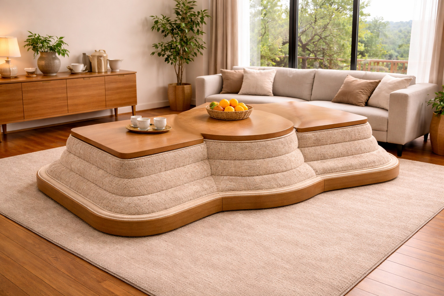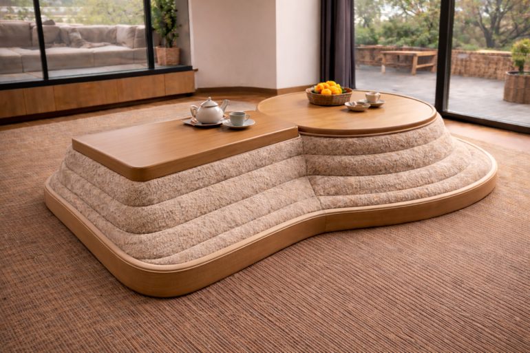 皆さんは、この寒い日々をどうやって乗り切っていますか。今日は、家族の団欒に欠かせない冬のあったかグッズ、こたつの新しい形の提案です。