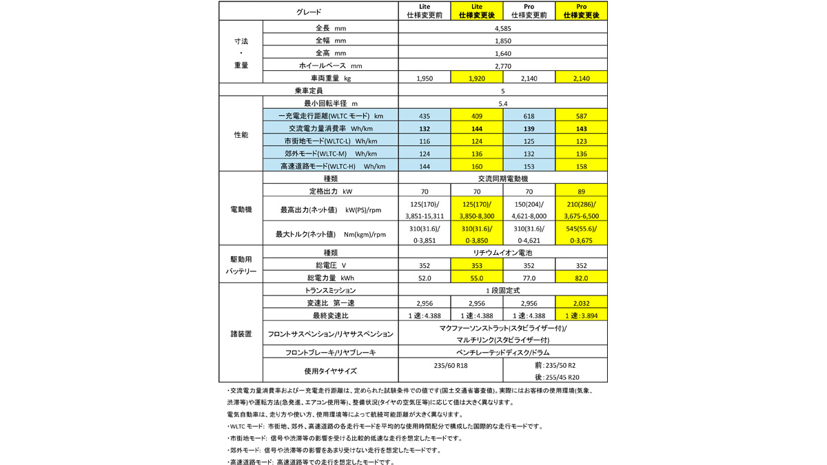 さらに、直流入力電源が403V/250Aから403V/350Aへ向上。急速充電の最大充電電流が350Aへ向上したことにより、150kW級の充電器によって充電した際に、これまでよりも短い時間で充電を行うことが可能となり、外出先での利便性が向上した。
