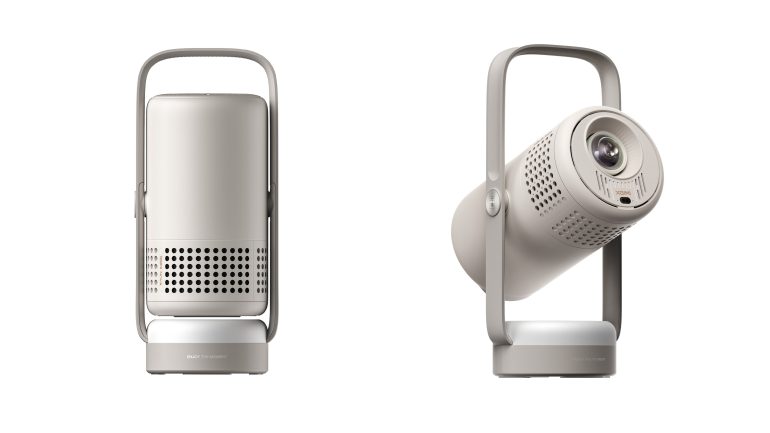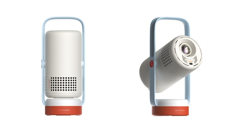 「Nova」は、大画面エンターテインメントとライフスタイルに寄り添う機能を融合させた、エントリーユーザー向けのポータブルプロジェクター。300度自由回転のジンバルを搭載しており、片手で軽く回すだけで投影方向を瞬時に切り替え、天井シアターを手軽に実現。ジンバルはそのまま持ち手としても使え、外出時の持ち運びも便利だ。