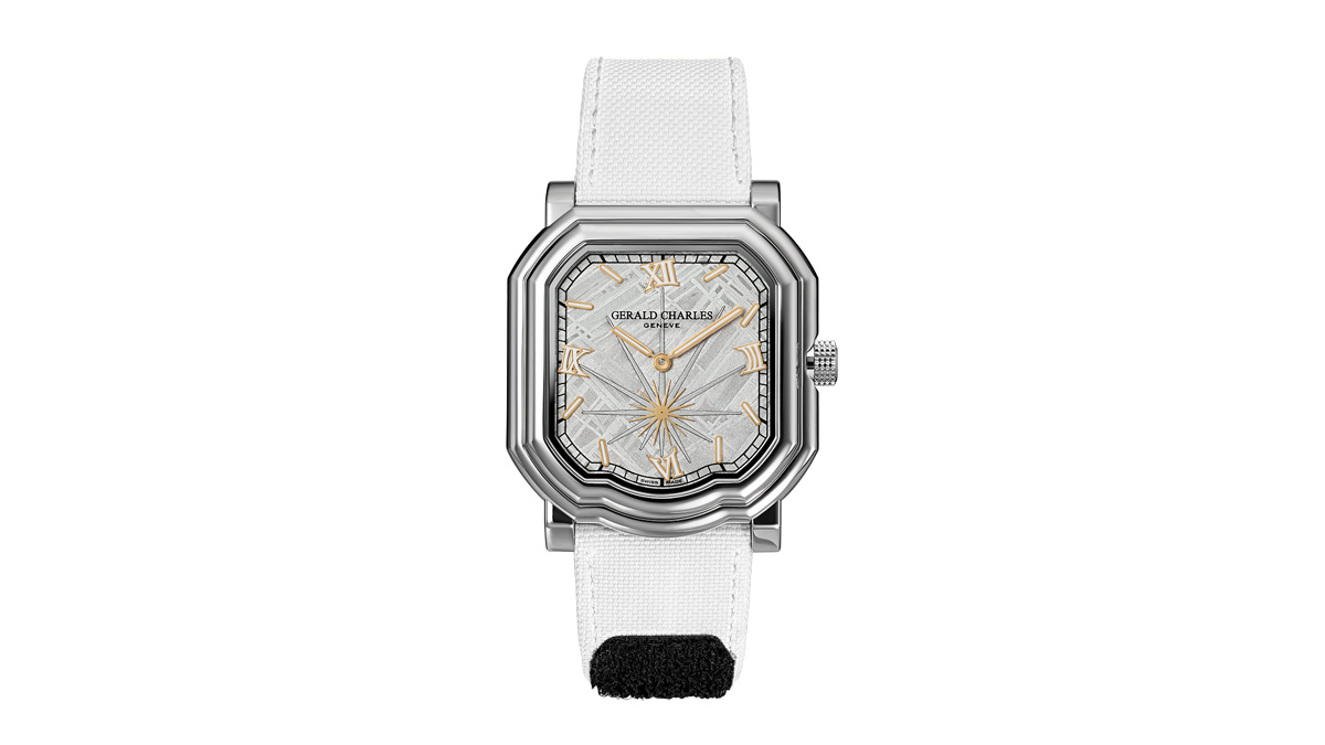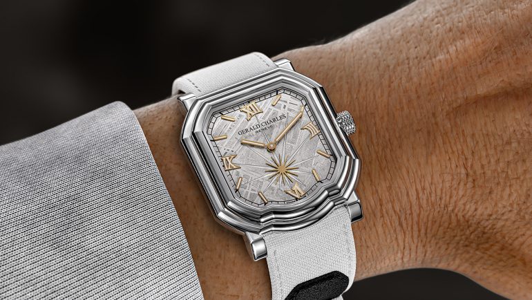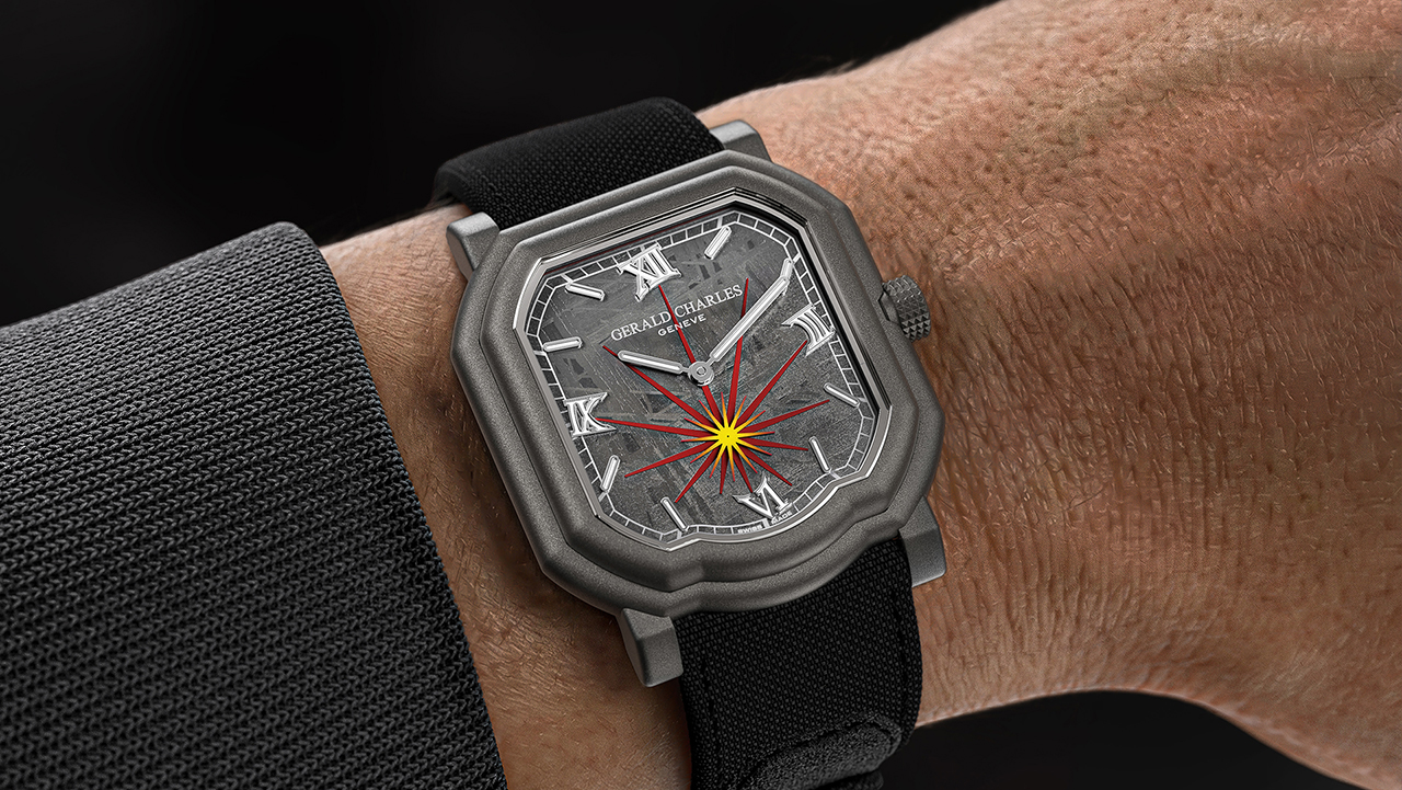 ジェラルド・チャールズは、2026年の新作として、メゾン初のスモールセコンドを伴うメテオライト文字盤を備えた腕時計「マエストロ 2.0 メテオライト」を発売した。