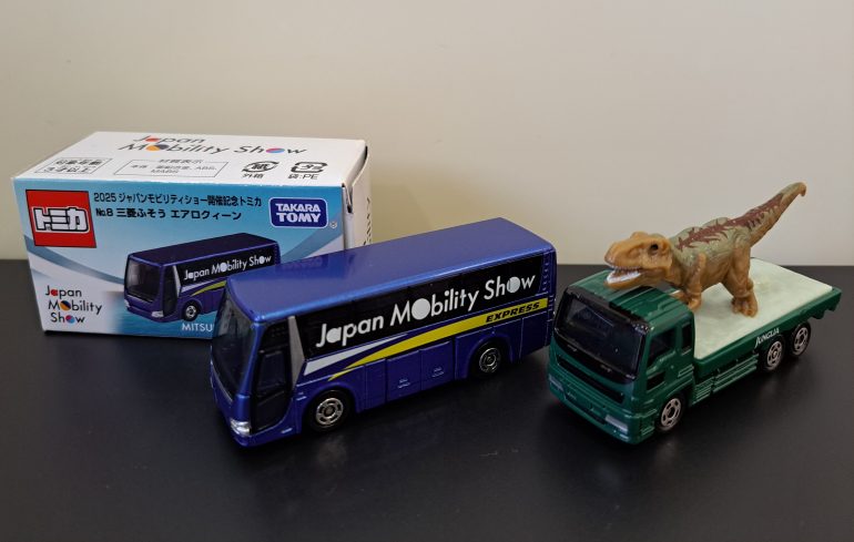 人は“限定モノ”に弱い(笑)今しか買えない、そこでしか買えない、となったら欲しくなるものです。トミカ博などのイベント限定のトミカは、人気が高い傾向にあります。我が家には、私の妹たちが次男にお土産でくれたJAPAN MOBILITY SHOW限定のトミカと、ジャングリア限定のトミカがあります。前者は箱までカッコいい!
