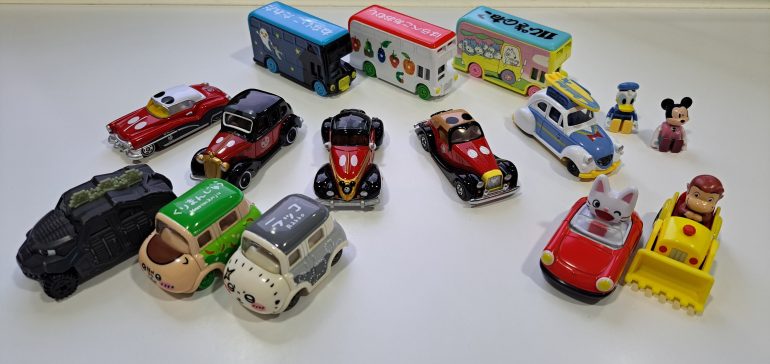 私の場合はドリームトミカ、いわゆるコラボ商品のデザインがかわいくて好き。子どもも喜ぶので、家族で楽しむのにはピッタリです。絵本のキャラクターやディズニーなど、ワクワクするようなキャラクターをモチーフにしたトミカがたくさんあります。最近の新入り、ちいかわのラッコ、小ぶりでコロンとしてて癒される…。子ども向けやかわいいものだけでなく、ゴジラやドラゴンボールなど大人も魅了するラインナップが揃っています。